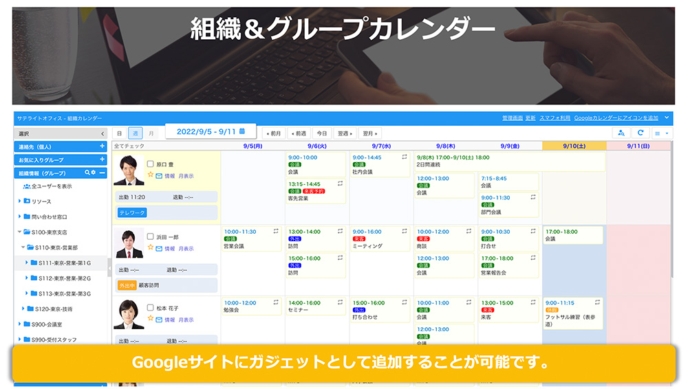サテライトオフィス・組織&グループカレンダー for Google Workspace とは、Google カレンダーのアドオンアプリケーションです。