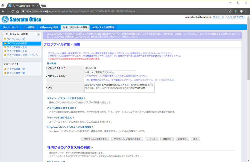 『サテライトオフィス・シングルサインオン for Workplace from Meta 』とは、ビジネス版Facebook=Workplace from Meta サービスを、ご利用になる企業&ユーザに対して、ネットワークや端末による細かなアクセス制御や、パスワード強度、ログイン履歴などを簡単にかつ柔軟に設定、管理することができるサービスです。