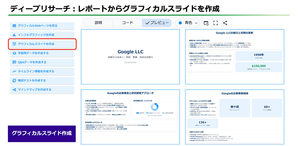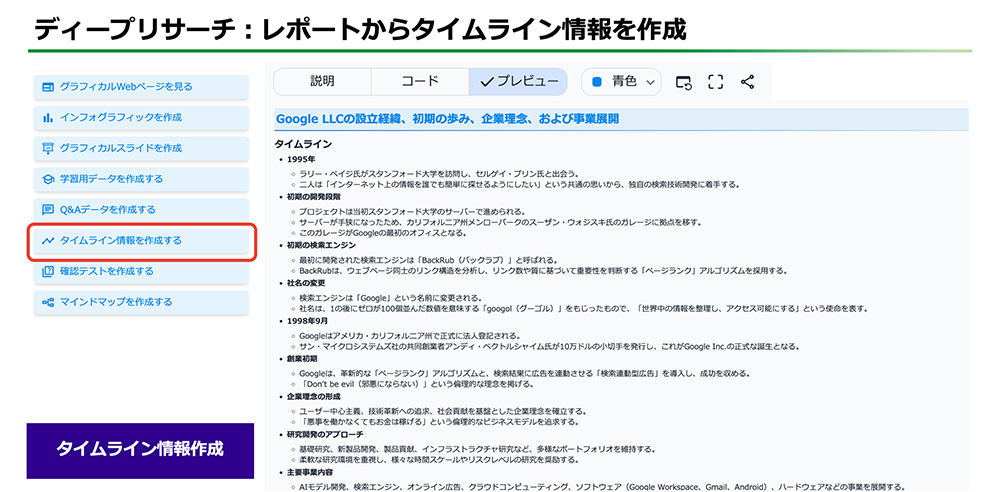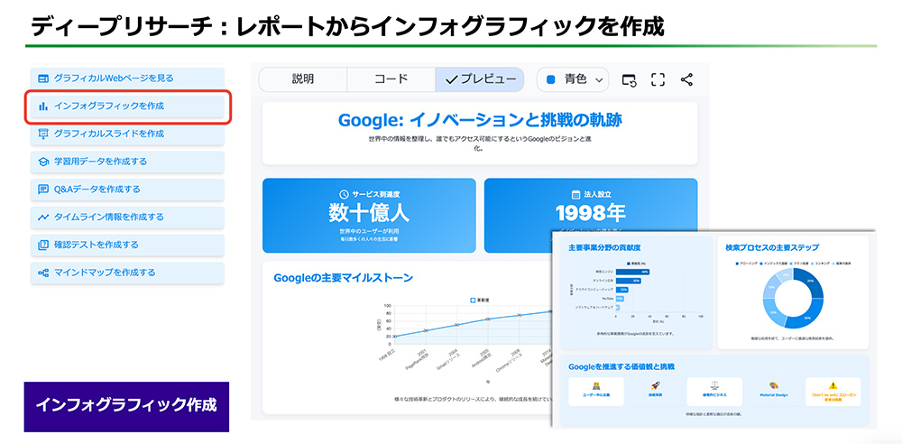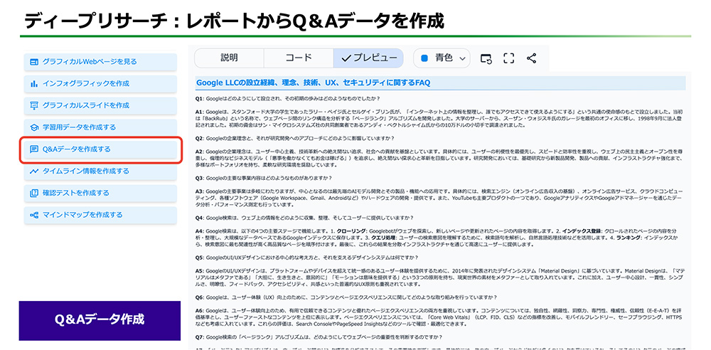 AIの調査内容をもとに、Webページを作成してくれます。 |